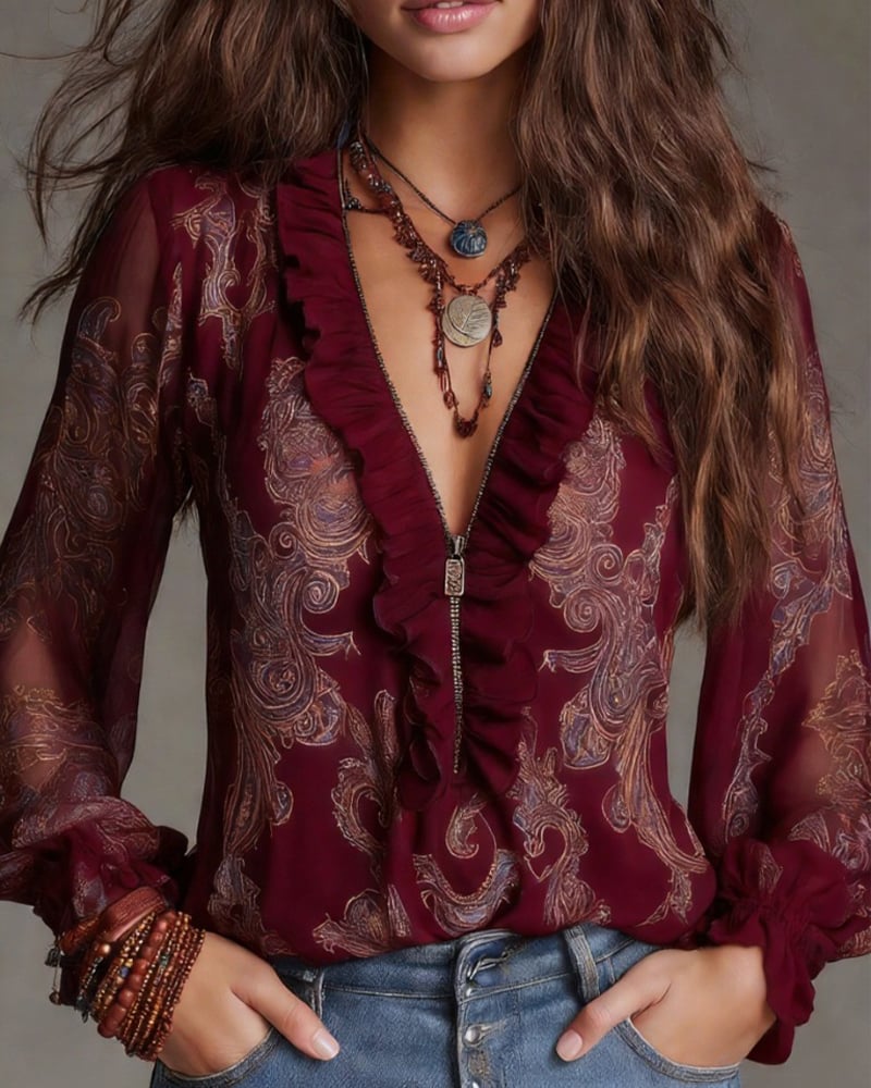 Blus Halvbläster Rysche Retro