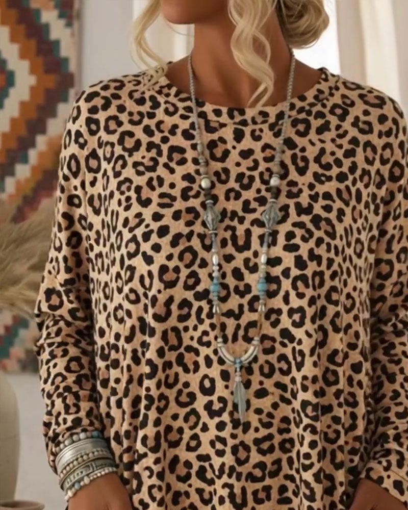 Topp Med Leopardtryck Och Rund Hals