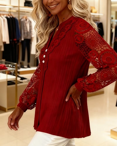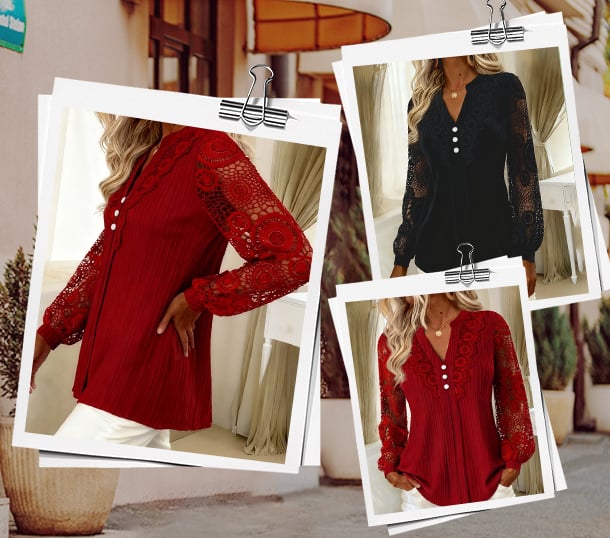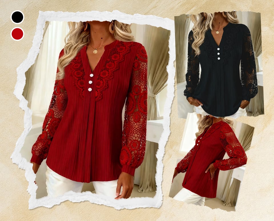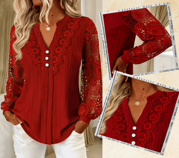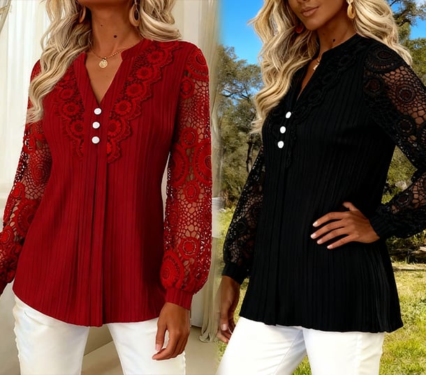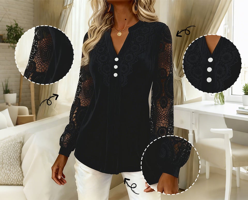 Intrikat spets, mjuk textur och en graciös V-ringning — femininitet på ett enkelt sätt.