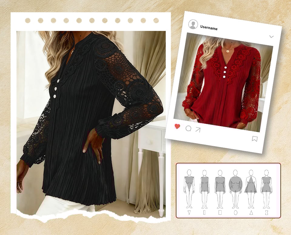 Spetsdetaljerna är så delikata — det ser elegant ut utan att vara överdrivet. Perfekt för både arbete och middagsdejter.