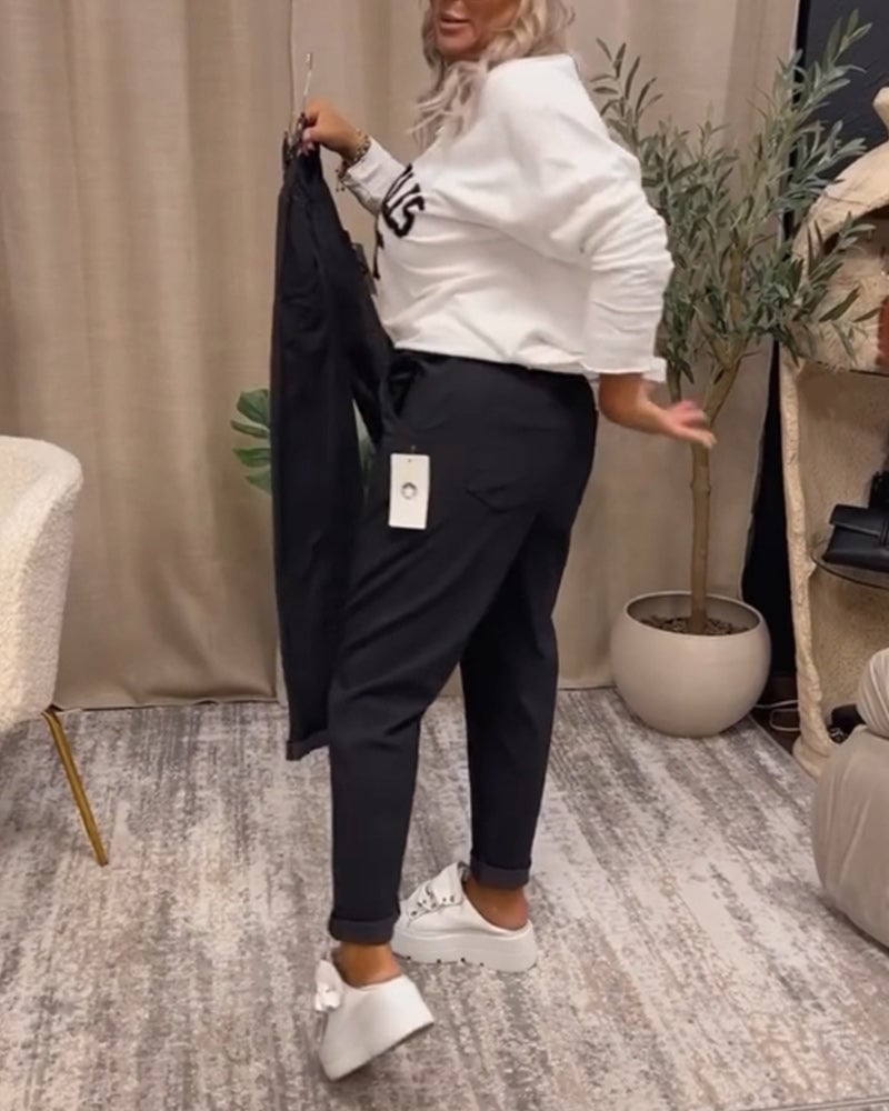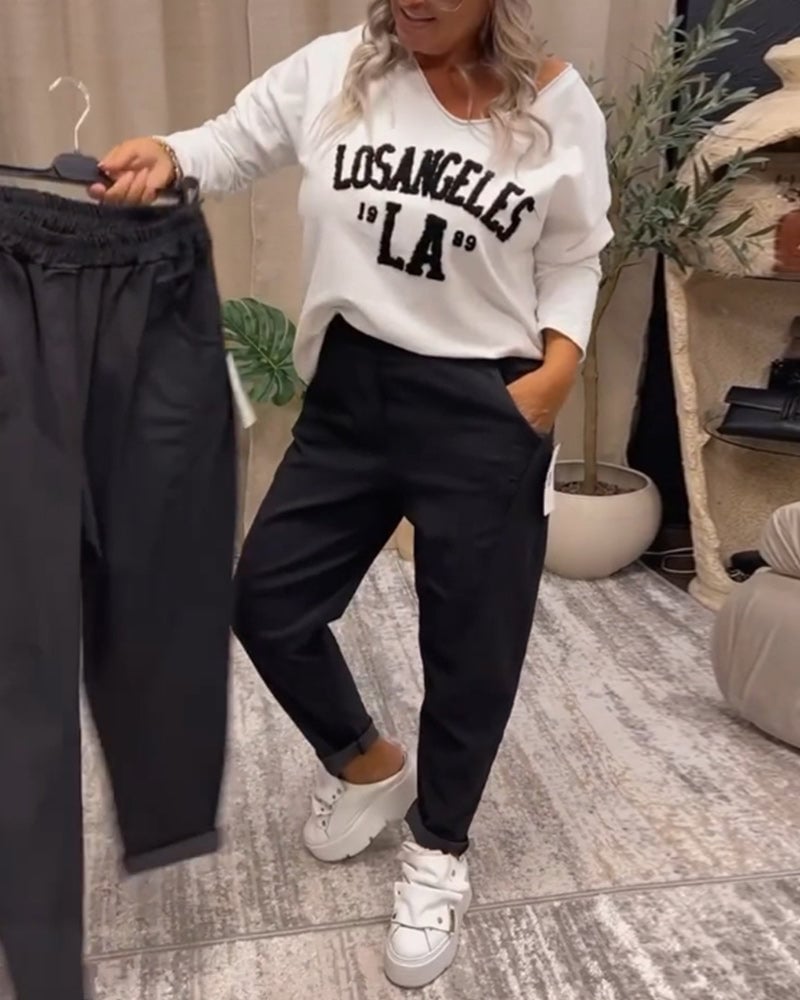 V-ringad casual sweatshirt med bokstavstryck